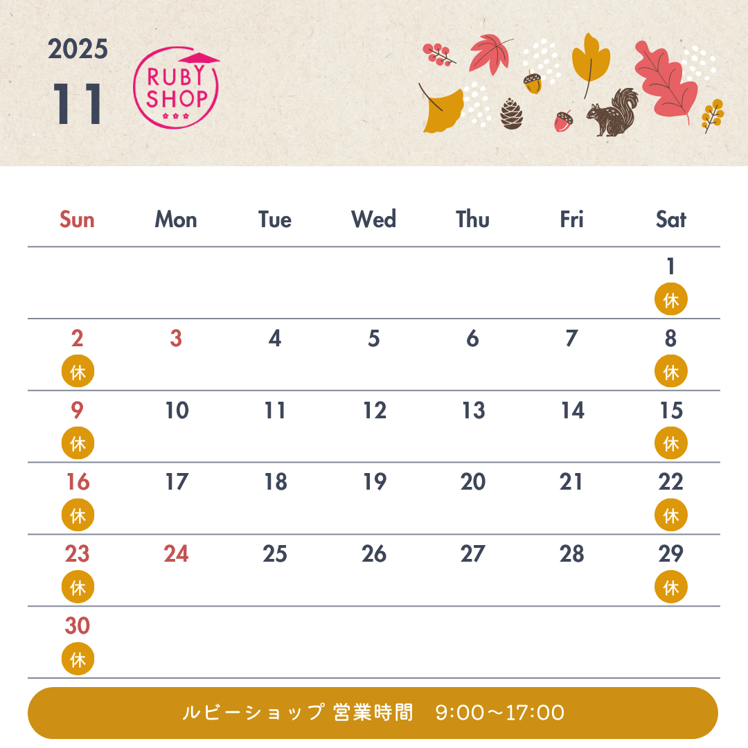 • 祝日営業:11/3(月・文化の日)/11/24(月・振替休日)は通常営業 です。